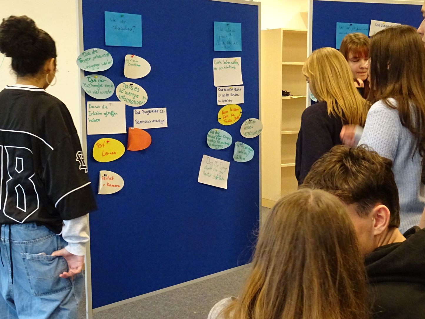 In den folgenden Tagen wurde der Film im Workshop gemeinsam reflektiert, historisch eingeordnet und auch unter filmischen Gesichtspunkten analysiert. Im Zentrum stand anschließend die praktische Medienarbeit: In Kleingruppen recherchierten die Schülerinnen und Schüler zur NS-Geschichte und zur lokalen Erinnerungskultur, führten Interviews und produzierten eigene Kurzfilme.