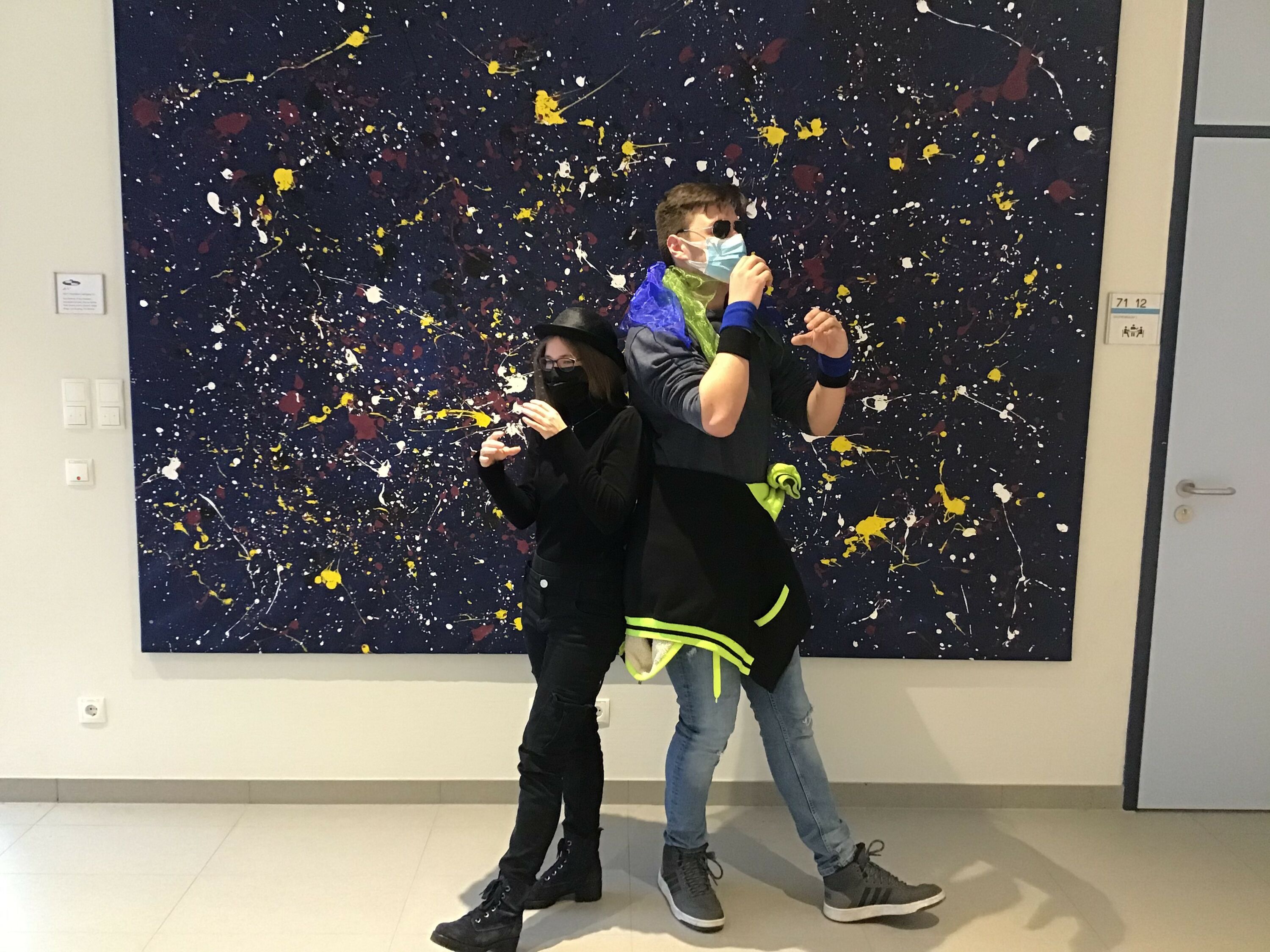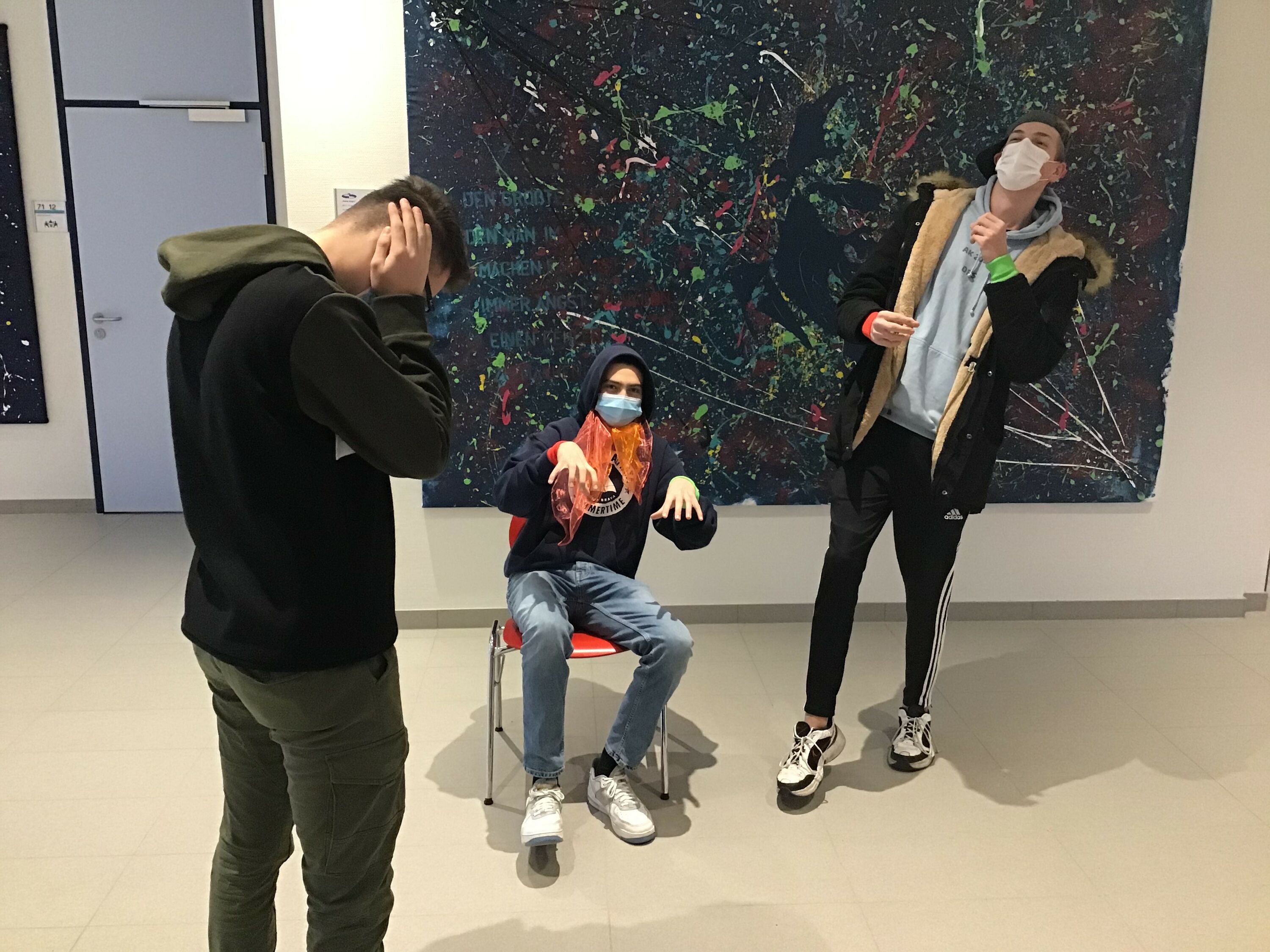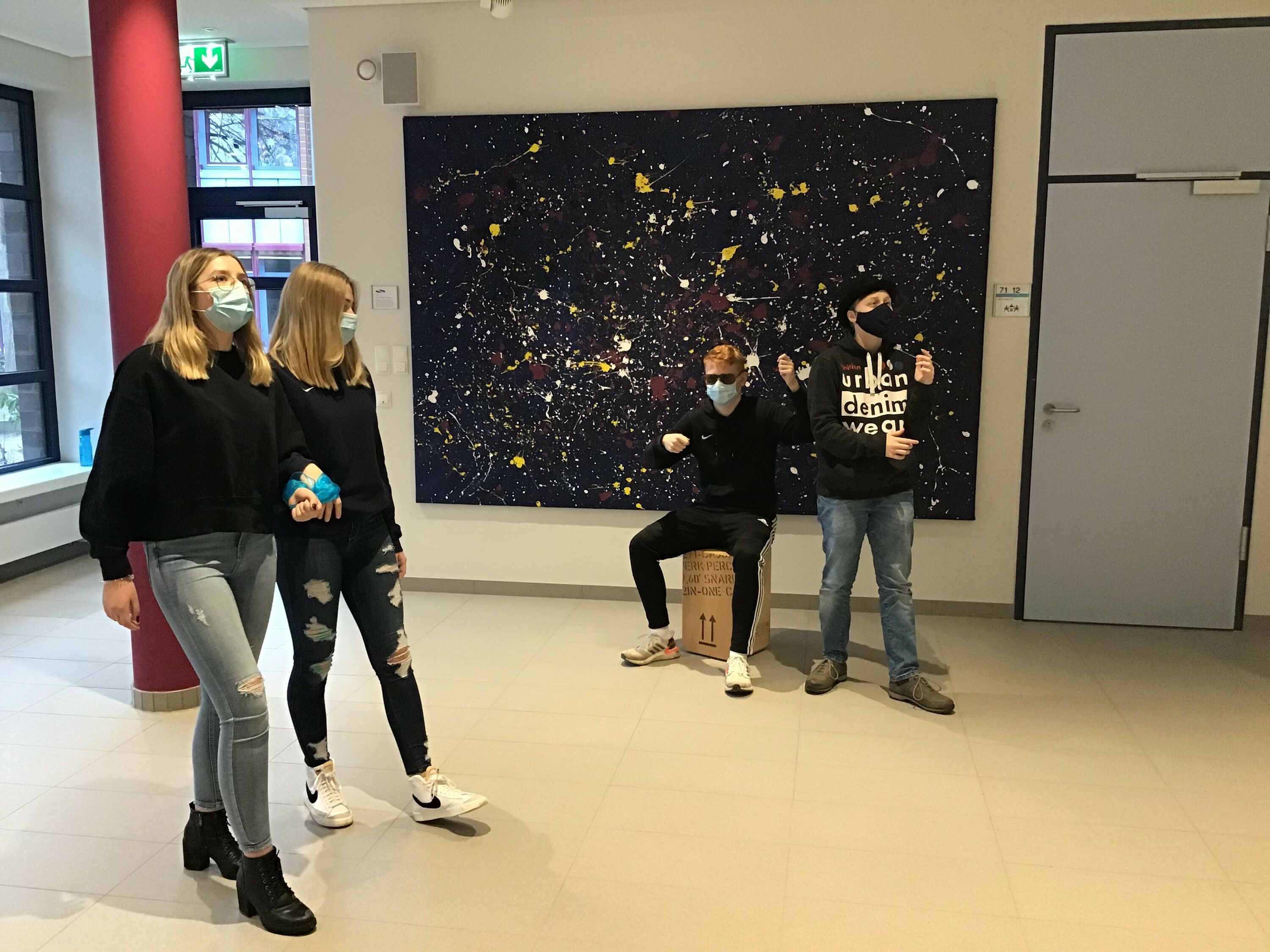 Die Schüler*innen des Musikkurses des 11. Jahrgangs stellen in Standbildern die Musikstile „Bebop“ und „Cool Jazz“ gegenüber. Aufgrund von musikalischen Analysen beispielhafter Stücke dieser beiden Stile entwickelten die Schüler*innen selbstständig Standbilder, in denen wesentliche Merkmale der Musik wiederzufinden sind. Es gelang ihnen, in kreativer Auseinandersetzung außermusikalische und musikalische Elemente zu verbinden.