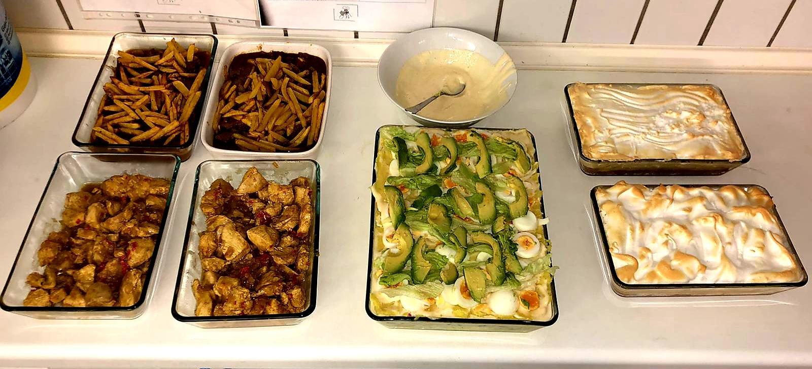 Das erste Fleischgericht nannte sich „Lomo Saltado“ und war ein scharfes Rindergeschnetzeltes. Das andere war Hähnchen mit Limette und Chili. Zu beiden Gerichten gab es Reis. Für die Vegetarier gab es „Causa a la limeña“. Das ist eine Art Kartoffelpürree mit Limette, Chili und darüber eine selbstgemachte Mayonnaise, Bohnen und Mais. Zum Nachtisch gab es „Pie de Limón“, einen Zitronencremekuchen. Am Ende haben wir alle zusammen gegessen und jeder konnte sich das vom Buffet nehmen, was er mochte. Alle hatten Spaß beim Kochen!