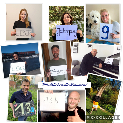 Liebe Schülerinnen und Schüler! Wir grüßen euch ganz herzlich und hoffen, dass ihr und eure Familien wohlauf seid! Wir denken an euch und freuen uns auf ein Wiedersehen! Den Prüflingen wünschen wir viel Glück bei Abitur, ESA und MSA!