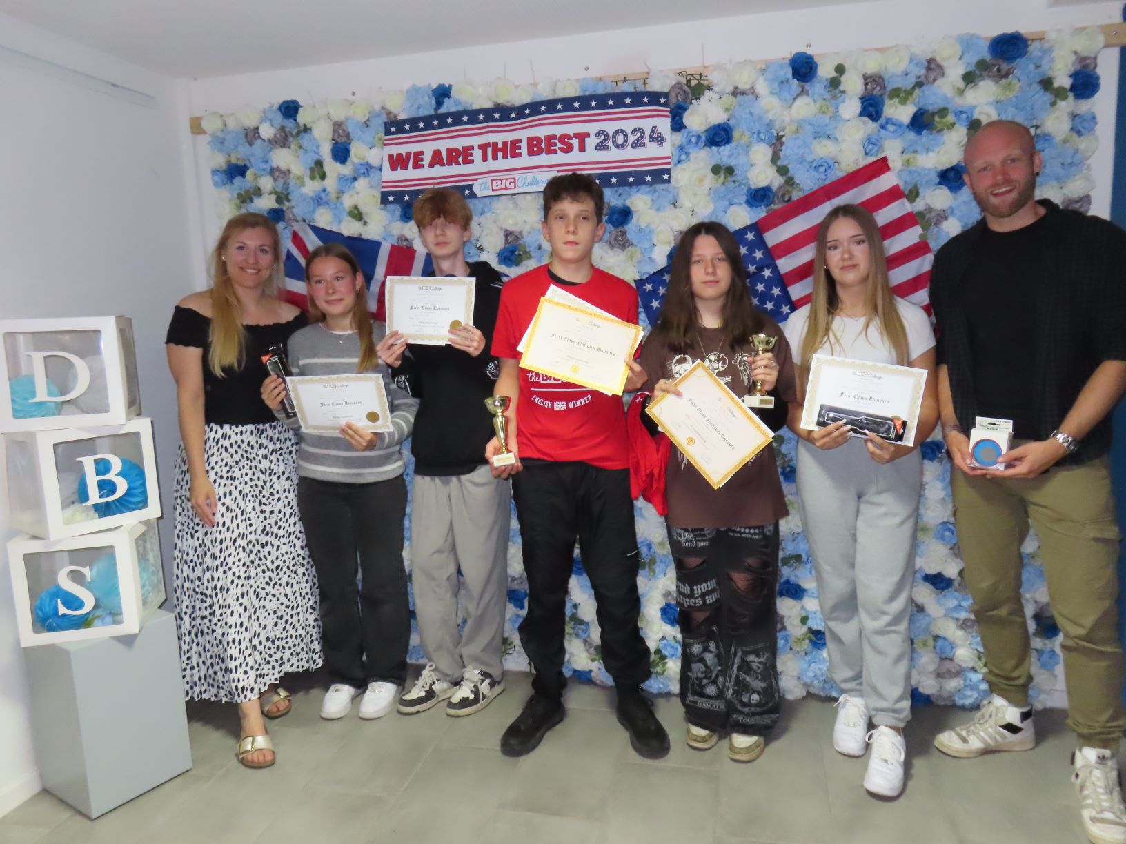 In der letzten Schulwoche ehrten wir, die Englischfachschaft, die besten fünf Schülerinnen und Schüler des 7. Jahrgangs und gratulierten dabei Matilda Meyer (7b), Isabella Mehlmann (7d), Lukas Landowski (7f), Stine Christiansen (7e) und John William Csik (7e). Ihr habt wirklich tolle Arbeit geleistet.