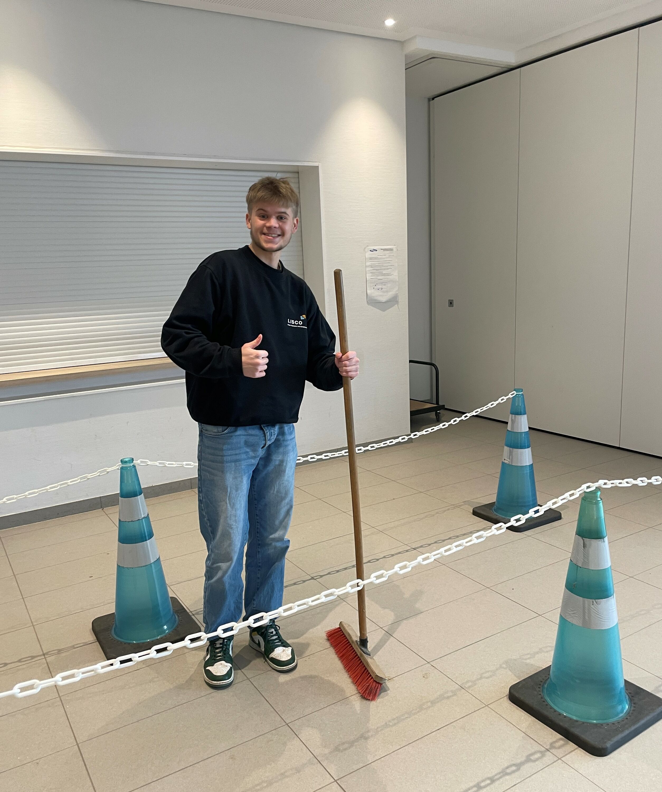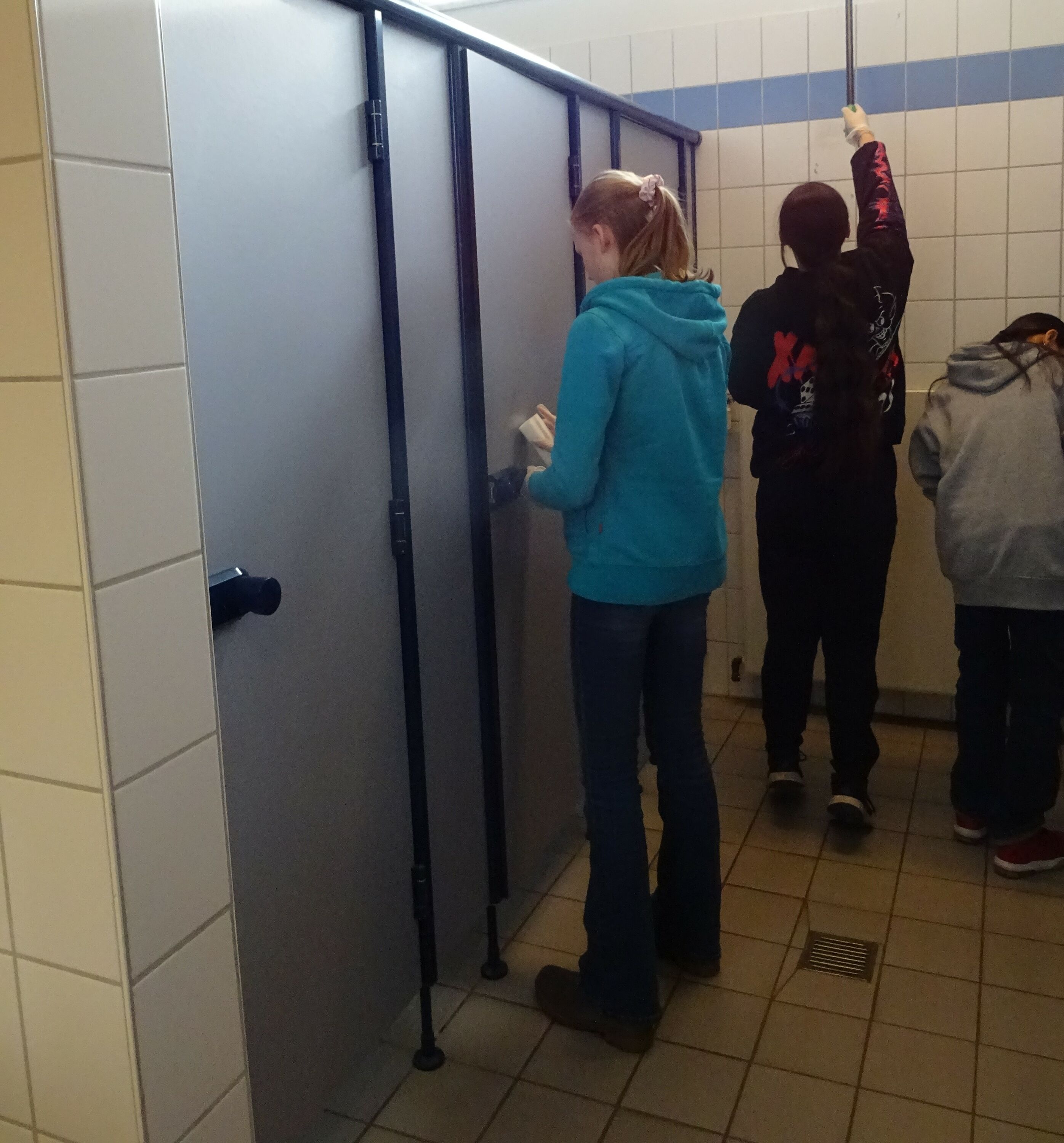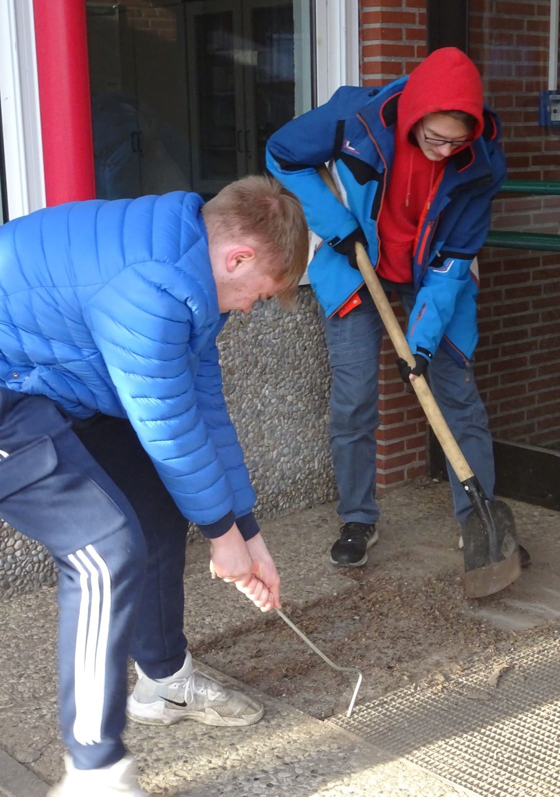 Am 9.2. waren alle Klassen in der 3. Stunde in Aktion. Herr Wülfken hatte einen Plan ausgearbeitet, nach dem jeder Klasse - neben der Reinigung des Klassenraums - eine Aufgabe zugewiesen war. Die Hausmeister stellten Reinigungsmaterial bereit und dann ging es los mit Schmutzradierern, Greifzangen und Reinigungsmitteln.