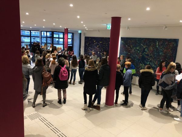 Im Foyer des Neubaus wurde in der Pause kräftig gesungen!