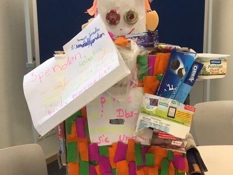 Schülerinnen und Schüler sammeln Spenden für den Schulverein.
